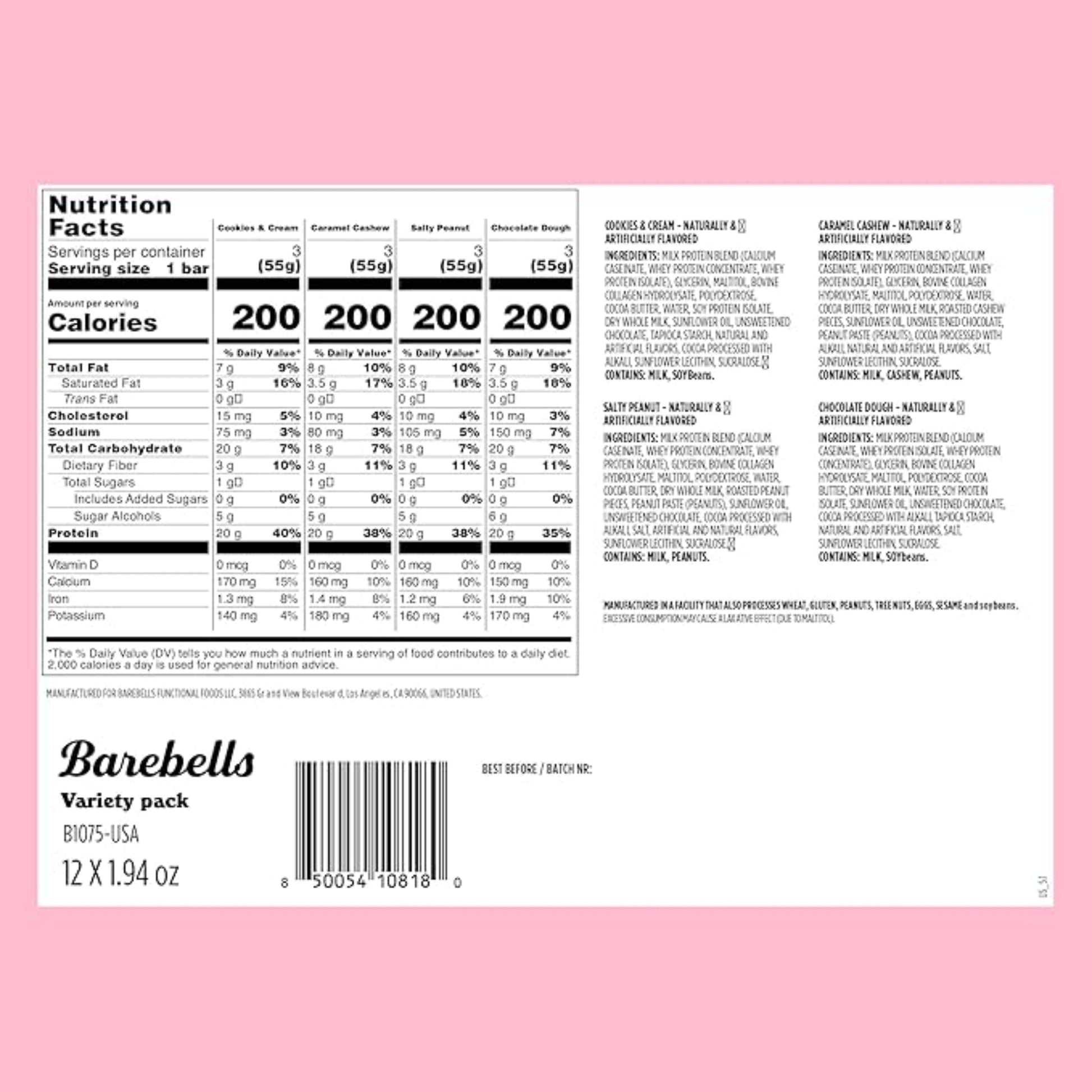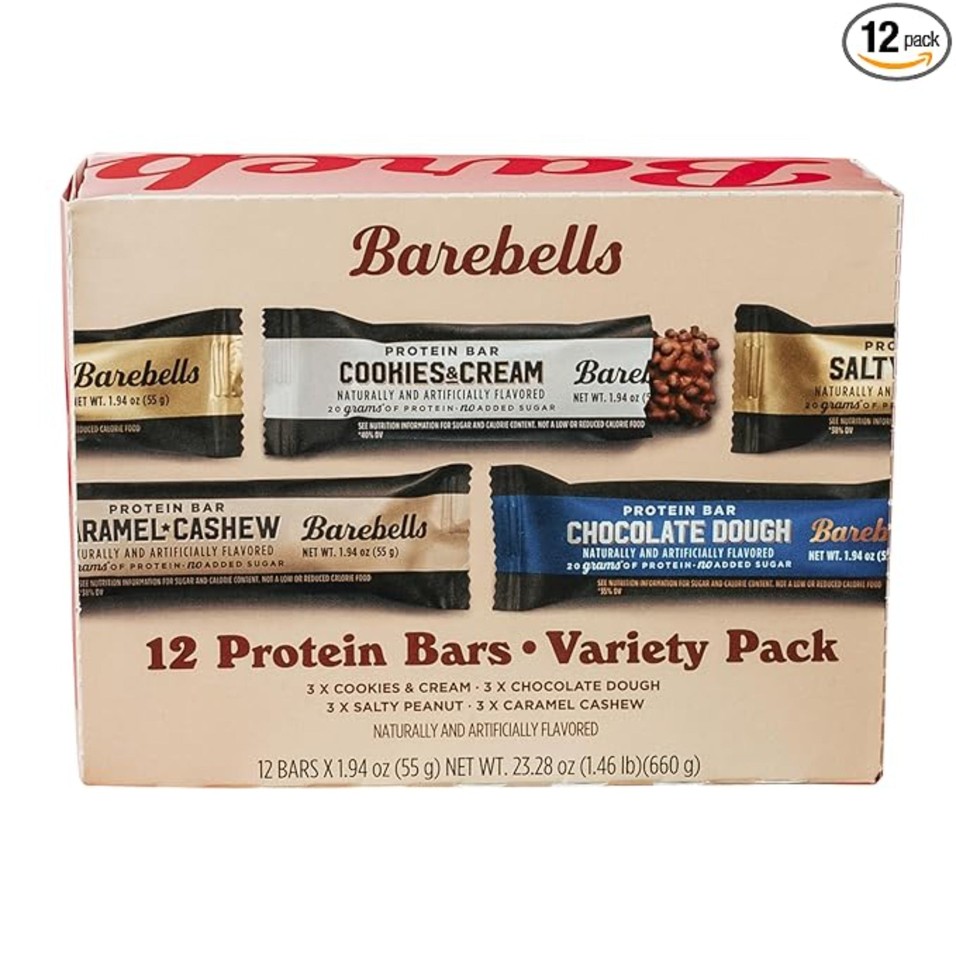 Barebells Protein Bars Variety Pack - 12 Count, 1.9oz Bars - Protein Snacks with 20g of High Protein - Chocolate Protein Bar with 1g of Total Sugars - Perfect on The Go Protein Snack & Breakfast Bars