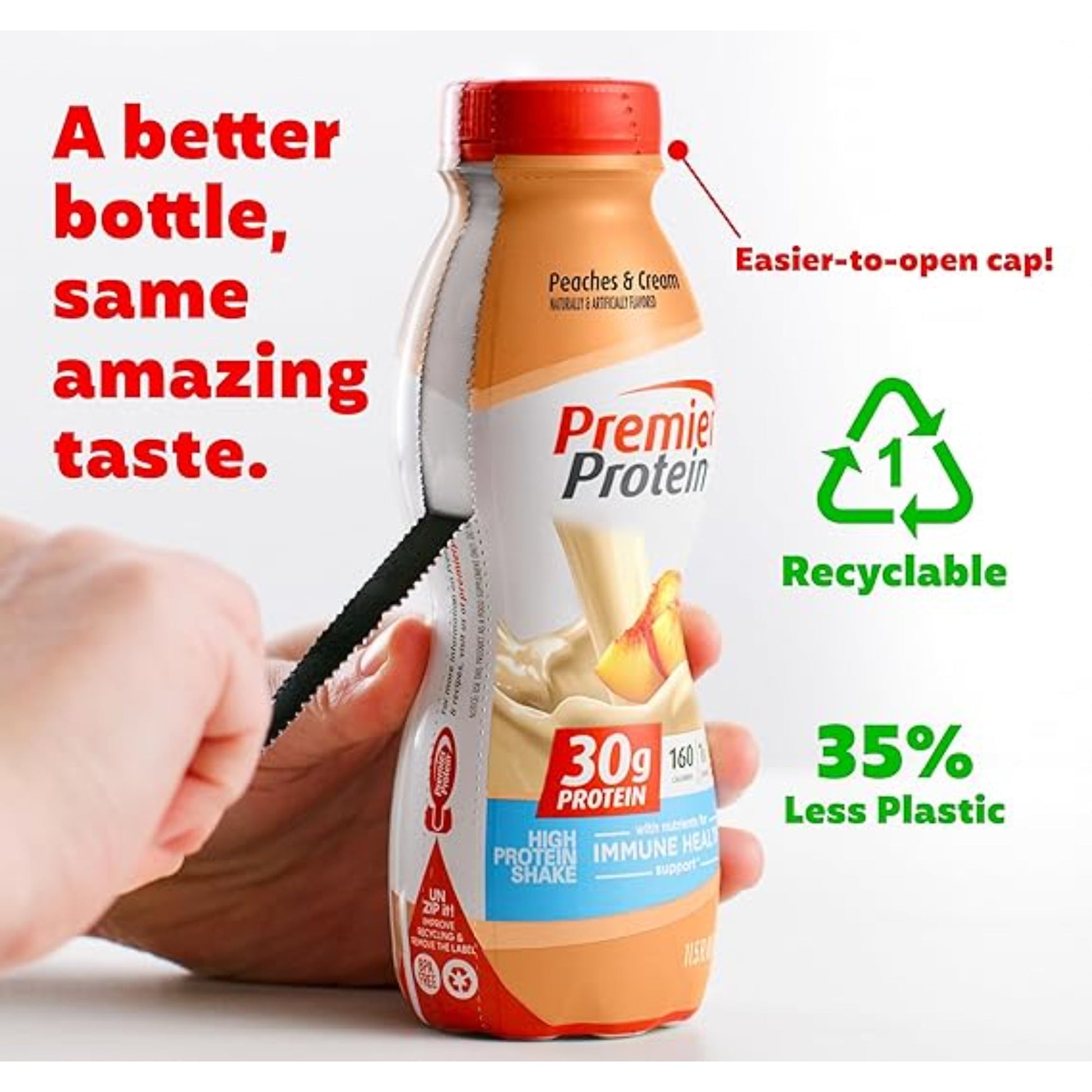 Premier Protein Shake 30g 1g Sugar 24 Vitamins Minerals Nutrients to Support Immune Health, Peaches & Cream, 11.5 Fl Oz (Pack of 12), Total 138 Fl Oz
